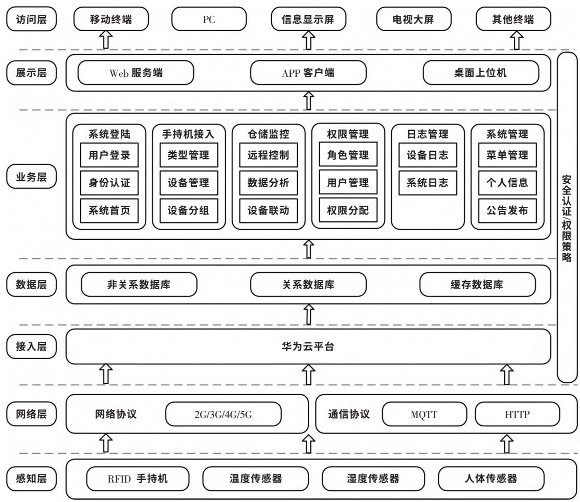 感知层利用各种传感器监控、采集仓储环境和货物信息,如温湿度、人员流动、货物标签等,并上传至云端,为大数据分析提供基础。