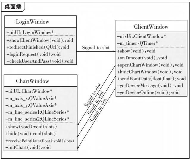 PC端应用基于华为SDK和Qt6机制开发,利用其跨平台特性,设计出三部分,即登录界面(Login-Window)、控制面板(ClientWindow)和温湿度图表(ChartWindow),图7为其UML结构。