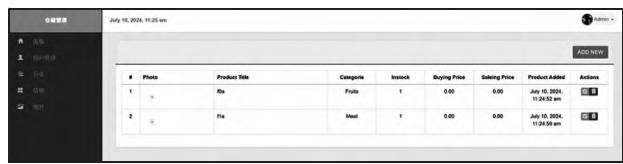 Fig.9 Warehouse management Web interface